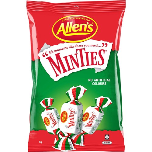 • Individually wrapped refreshing minty chews with no artificial colours.