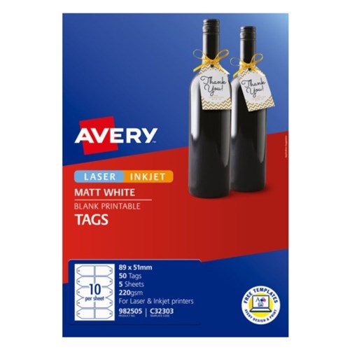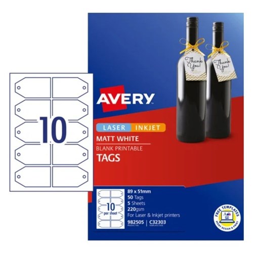 Avery Blank Printable Gift Tag Labels C32303 89 x 51mm Matte White 10UP 50 Tags 5 Sheets