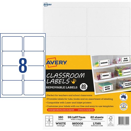 Avery Classroom Labels 160 Labels Laser Printer White 99.1 x 67.7 mm