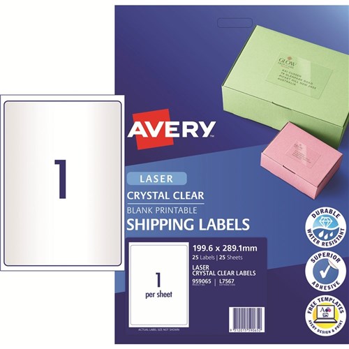 AVERY CLEAR LASER LABELS L7567 1UP 199.6x289.1mm PK25