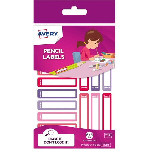 Avery Kids Pencil Labels 30 Assorted Labels Ultra Resistant 52x12 mm