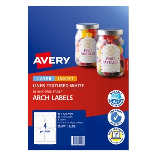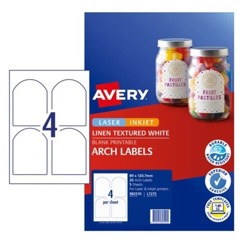 Avery Linen Textured Labels L7275 89 x 120.7mm Arched White 4UP 20 Labels 5 Sheets