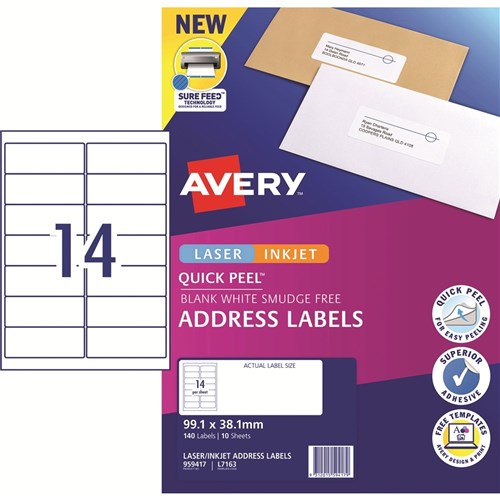 AVERY SURE FEED LABELS Laser 99.1 x 38.1mm White Pack of 140
