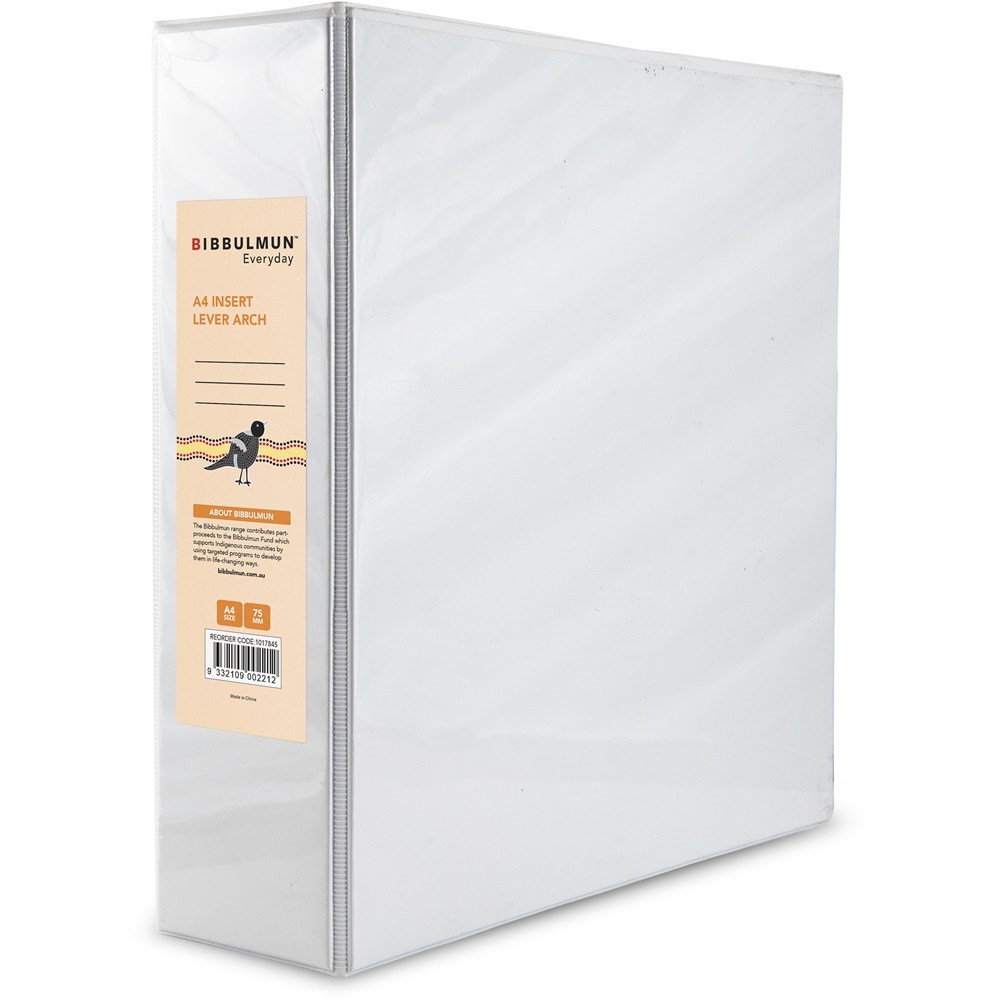 BIBBULMUN A4 LEVER ARCH INSERT Binder 75mm 2 Ring Spine White
