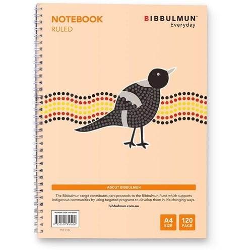 BIBBULMUN SPIRAL NOTEBOOK 7MM A4 120 Pages Side Bound Ruled