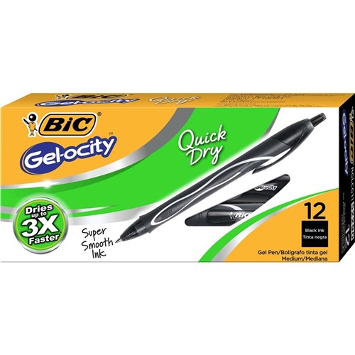 BIC GELOCITY GEL PEN Retractable 0.7mm Medium Black Pack of 12