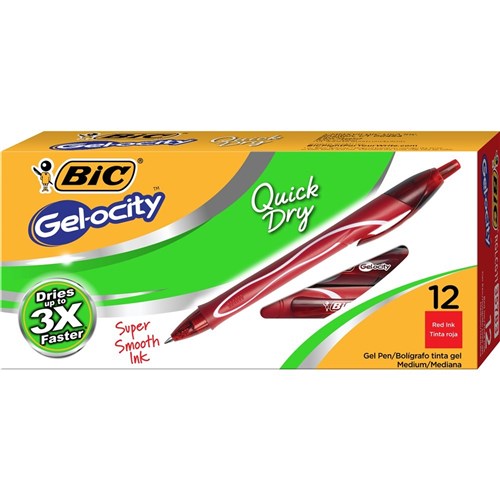 BIC GELOCITY GEL PEN Retractable 0.7mm Medium Red Pack of 12