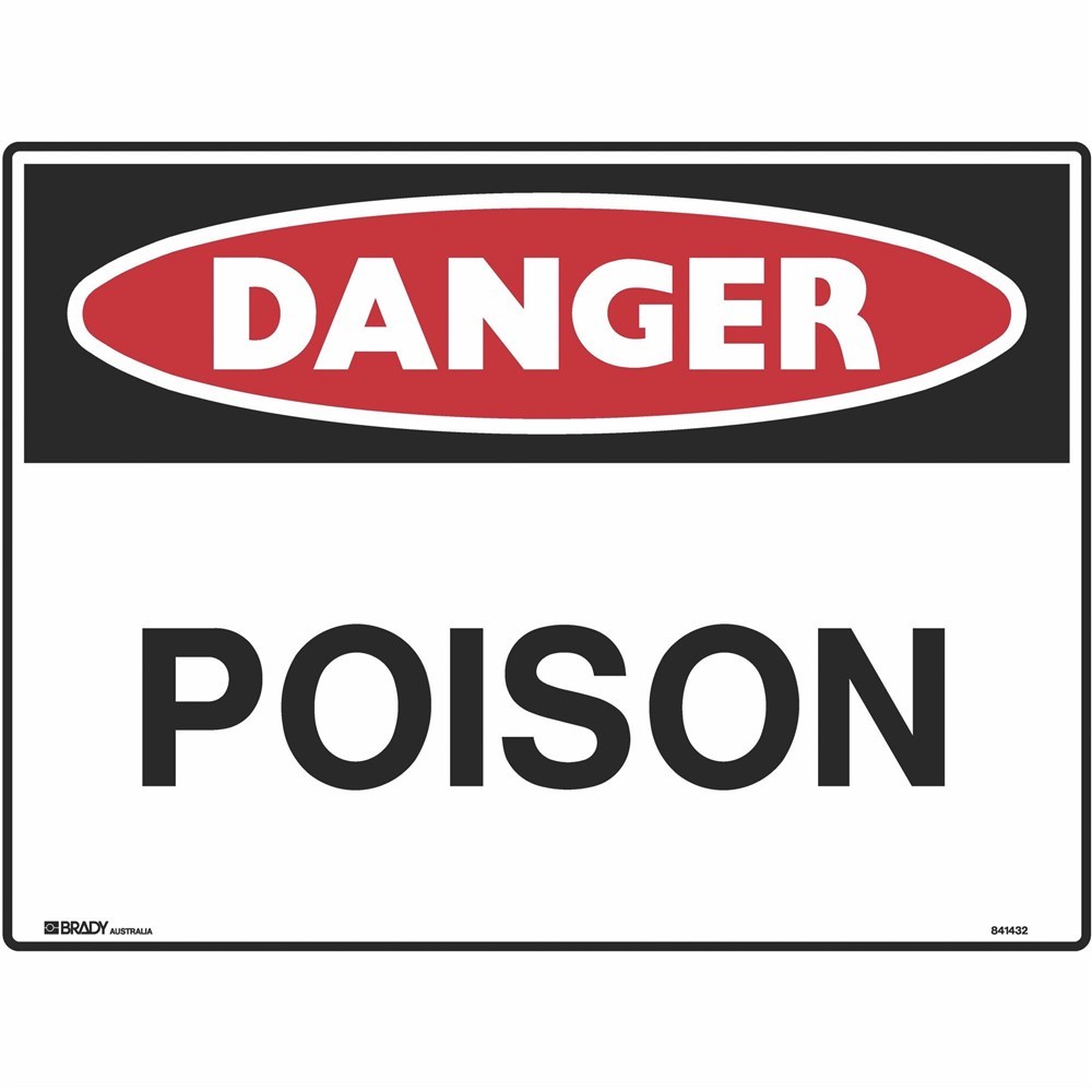 • The word DANGER is featured inside a red oval inside a black rectangle.