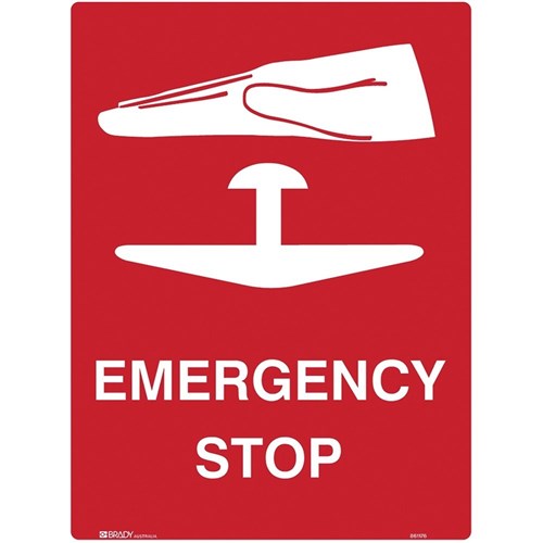 BRADY EMERGENCY SIGN Emergency Stop 600x450mm Polypropylene