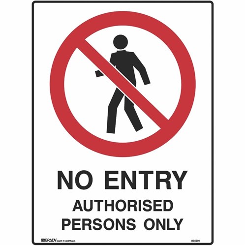 • Wording: No Entry Authorised Persons Only. Colour: White, red and black.