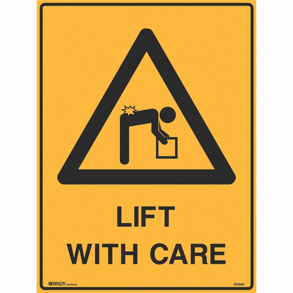BRADY WARNING SIGN Lift With Care 600x450 Metal