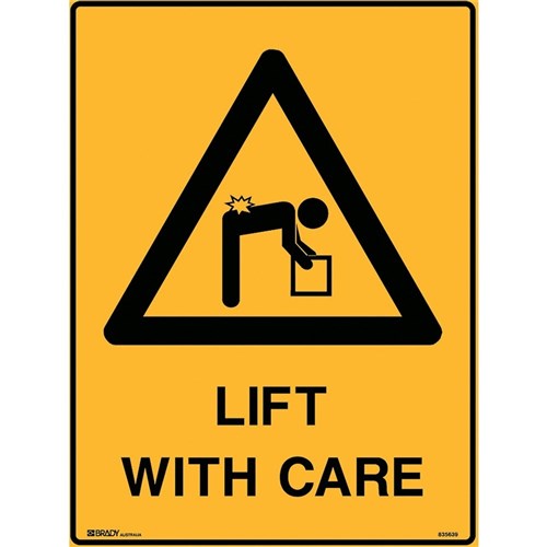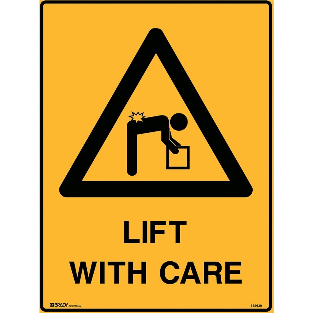 BRADY WARNING SIGN Lift With Care 600x450mm Polypropylene