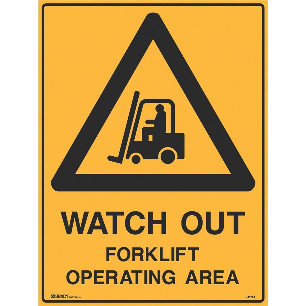 BRADY WARNING SIGN Watchout Forklift 600x450 Metal