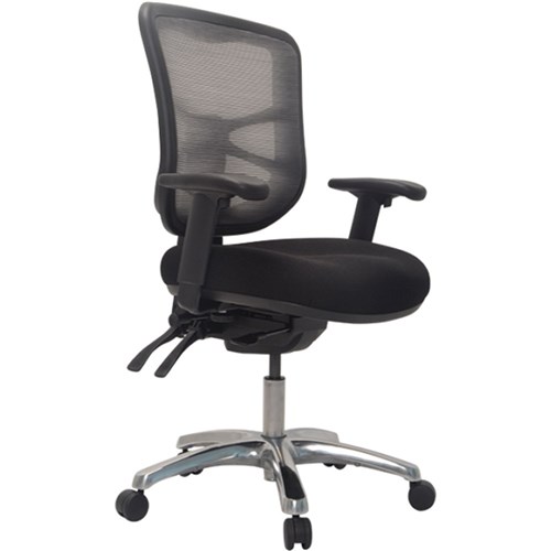 Buro Metro Mesh Chair Polished Alloy Base Seat Slide With Arms Black Fabric Seat
