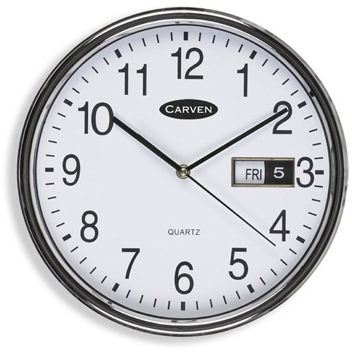 CARVEN CLOCK LCD DATE 285MM WHITE CL285SLCD