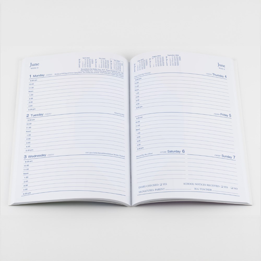 • The range is available as an A5 Week to View Student Diary (spiral or perfect bound) and practical A4 and A5 wire weekly notebook.