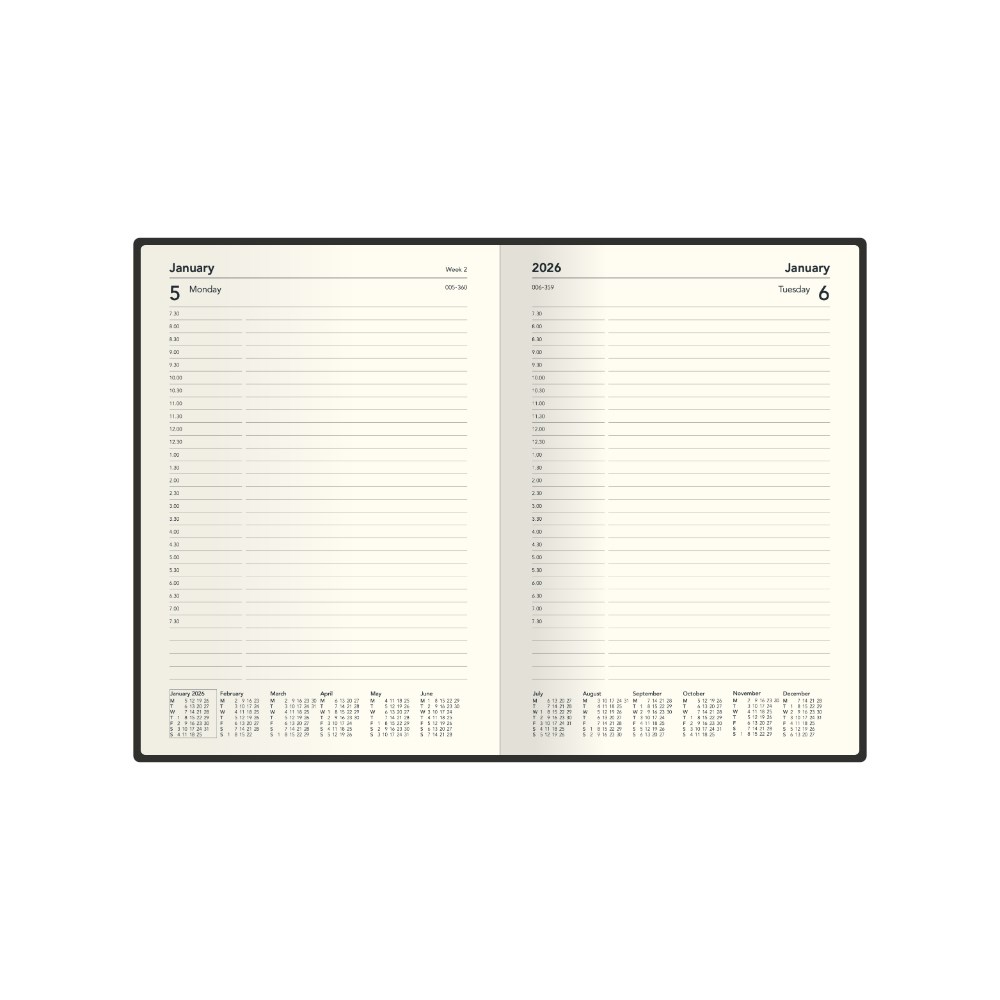 • Lay flat opening, ribbon marker and elastic closure.