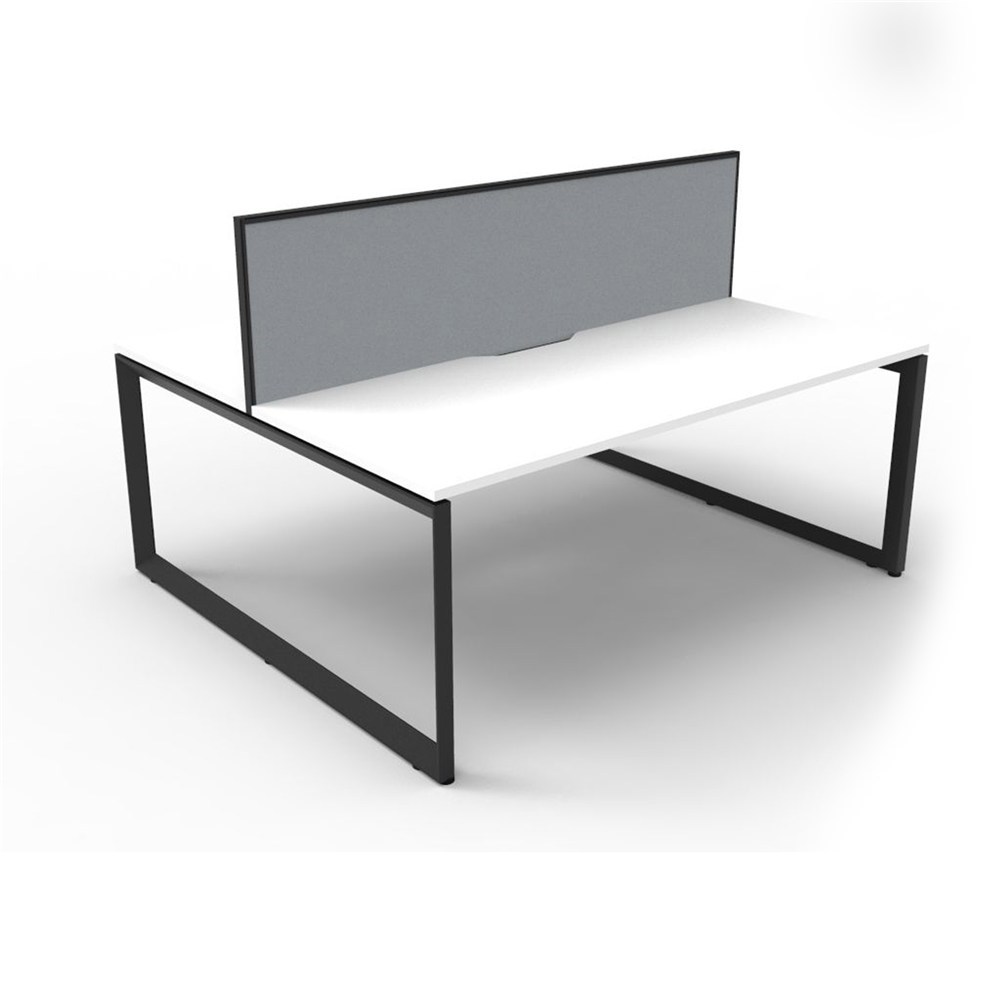 Deluxe Loop Workstation 2 Person With Screen 1200Wx750D White Top Black Double Frame