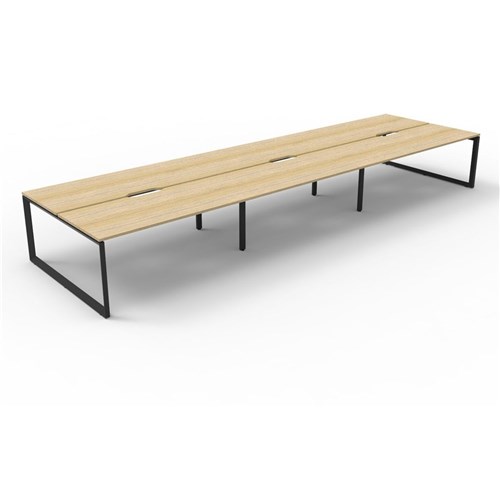 Deluxe Loop Workstation 6 Person No Screen 1800Wx750D Oak Top Black Double Frame