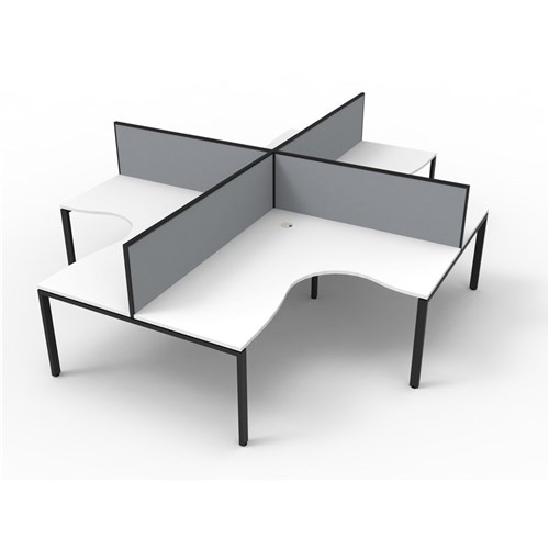Deluxe Profile Corner Workstation 1800Wx1500Wx750D White Top Black Quad Frame