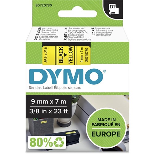 DYMO D1 LABELLING TAPE CASSETTES 9mmx7m Black on Yellow Tape
