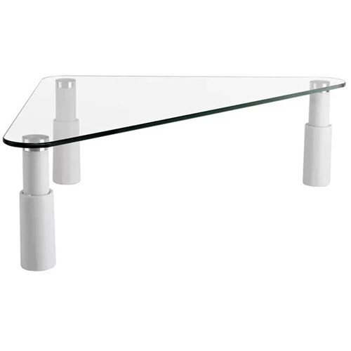 Ergovida Glass Top Monitor Stand Triangular With Three Height Adjustable White Legs