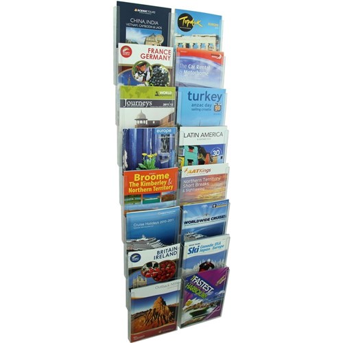 • The unique Cliplock system allows for multi tiered brochure holder displays that taper back into the wall making it the ultimate space saving wall display solution.