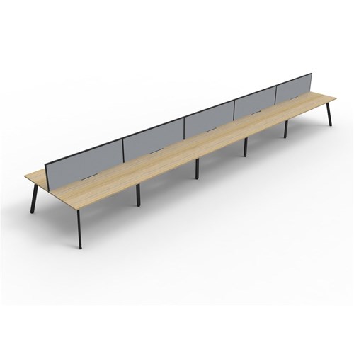 Eternity Workstation 10 Person With Screen 1800Wx750D Oak Top Black Double Frame