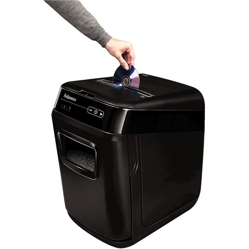 • Auto reverse, auto feed, bin full light, Can shred staples, credit cards, paper clips CD's/DVD's.