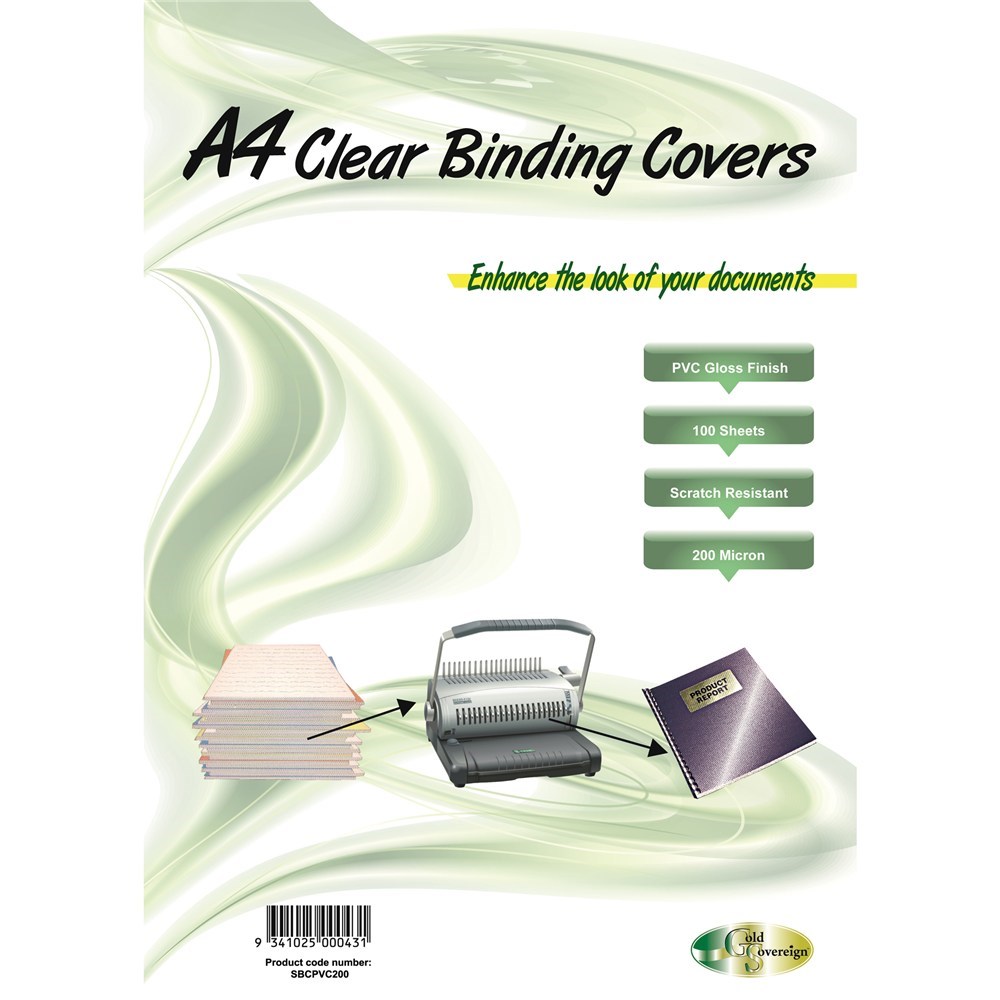 GOLD SOVEREIGN HEAVY DUTY Binding Covers 200 micron A4 Clear Pack of 100