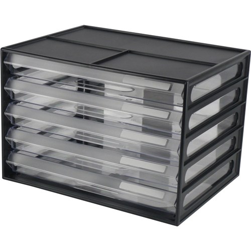 ITALPLAST A4 DOCUMENT CABNET 5 Drawer Black/Clear I326BLK **LANDSCAPE**