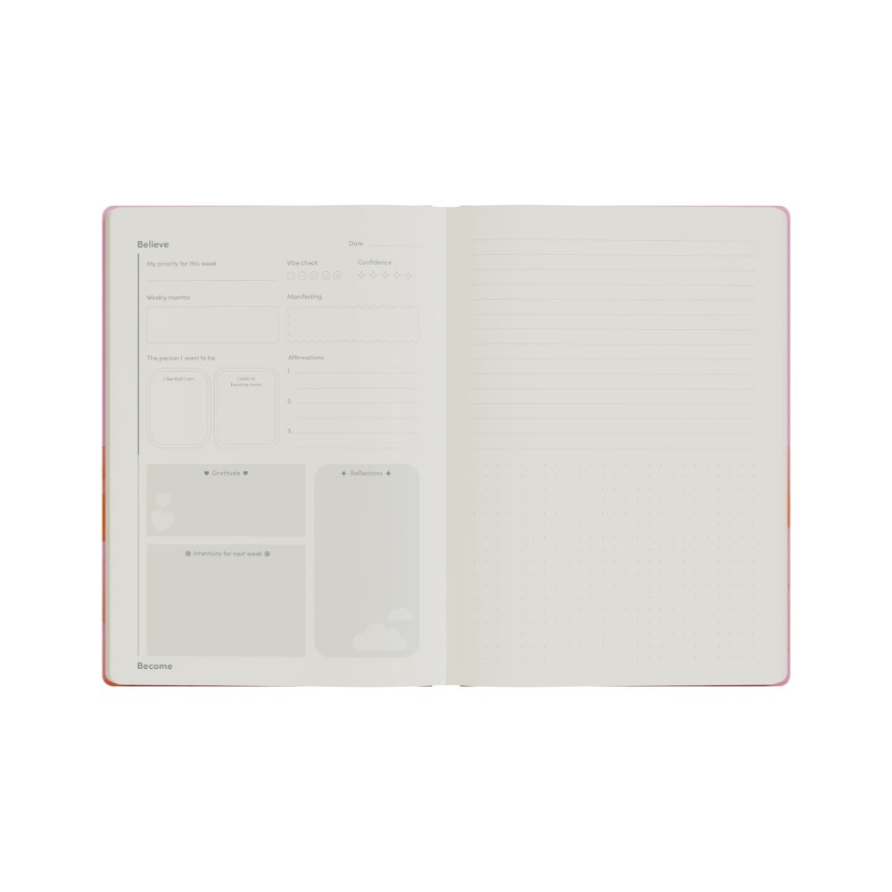 Jumble & Co Believe Become Manifestation Journal Hard Cover A5 Ruled Split 160p Pink