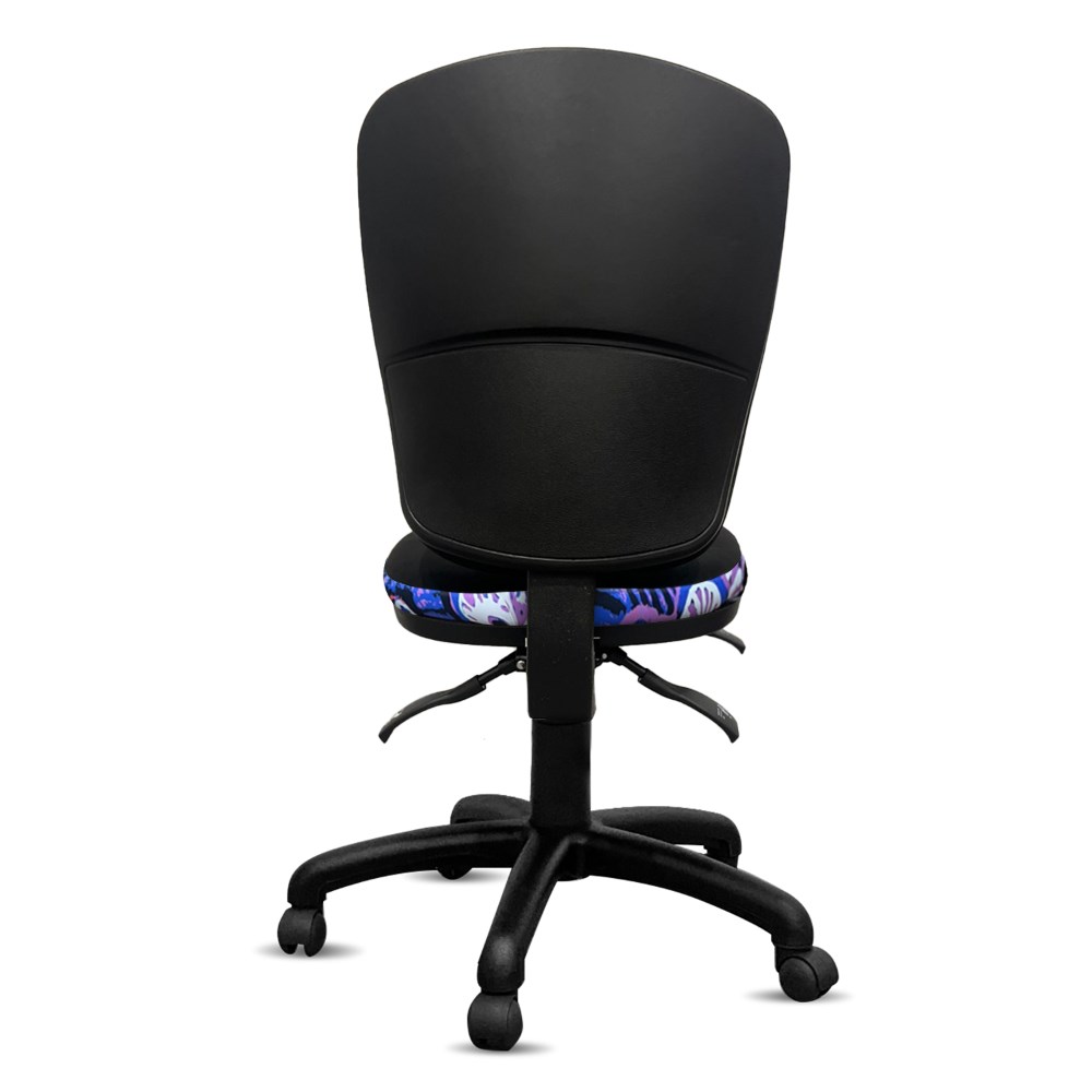 • Heavy duty commercial chair with 3 lever mechanism and ratchet back height adjustment.