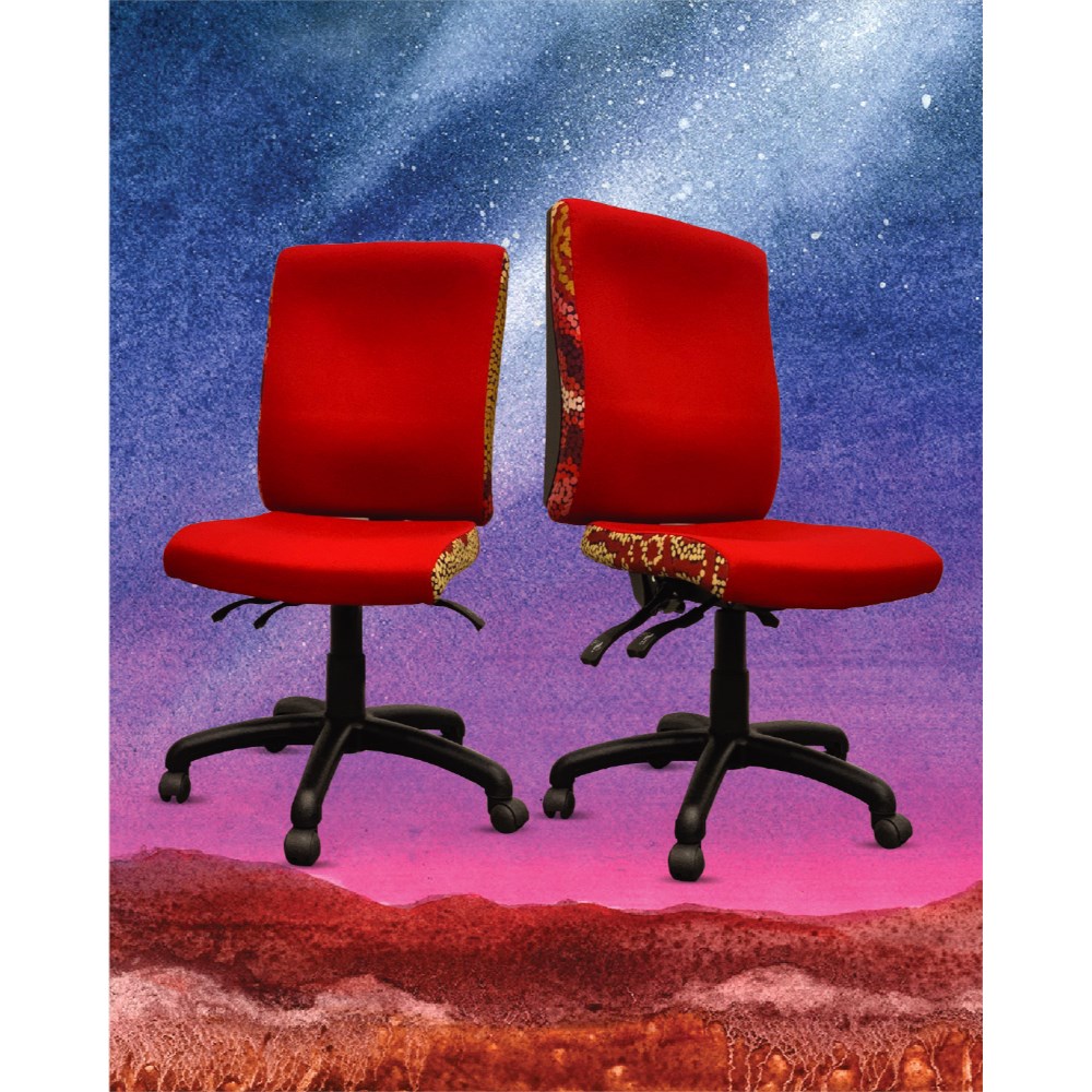 • A unique commercial fabrics designed by Damien and Yilpi Marks (Indigenous artists) combined with K2 Red Ochre Fabric to upholster the chair.