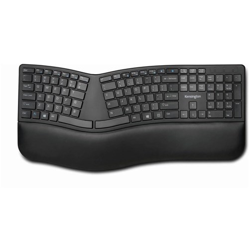 • Split and sloped keyboard with adjustable reverse tilt positions hands, wrists, and forearms for comfort.