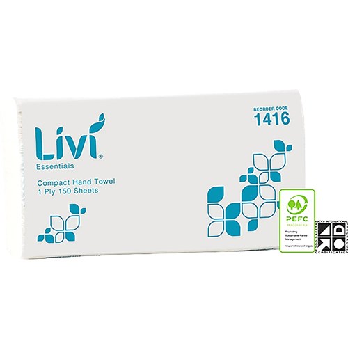 Livi Essentials Hand Towel Compact 1 Ply 150 Sheet Box of 16 suits dispenser 5507
