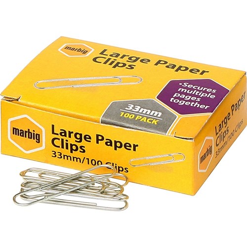 MARBIG PAPER CLIPS LARGE 33MM BX100
