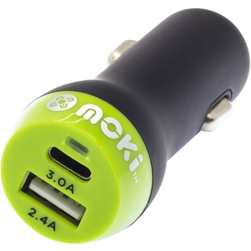 MOKI CAR CHARGER PLUS (Type-C + USB) 3.0 RapidCharge Black