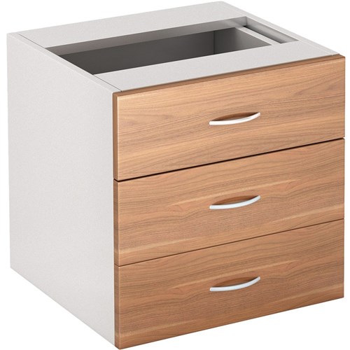 OM Premier 3 Drawer Fixed Pedestal W464 x D400 x H450mm Virginia Walnut and White