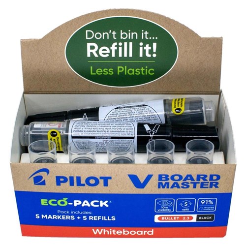 Pilot BeGreen V Board Master Whiteboard Markers Bullet 2.3mm And Refill Black Pack 5