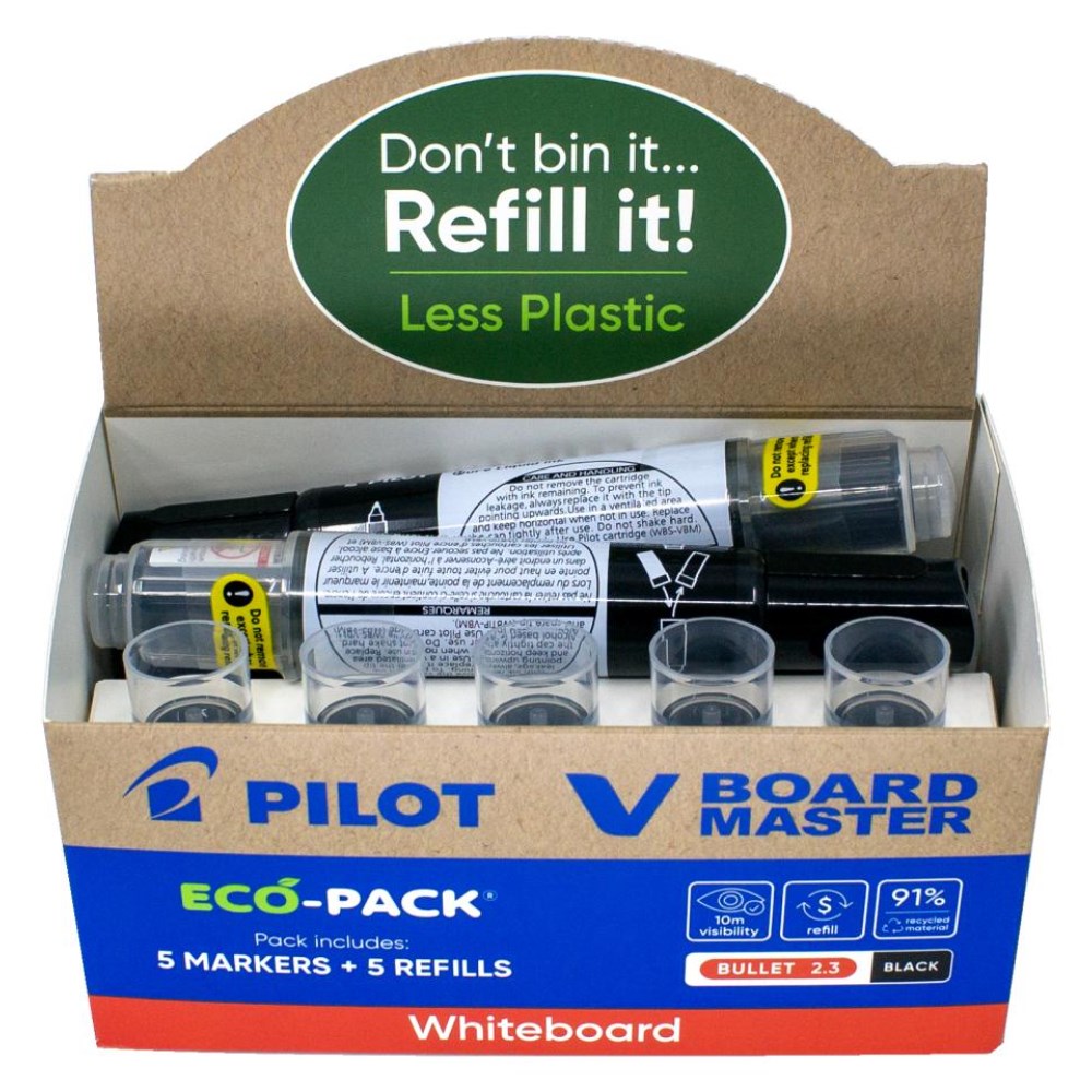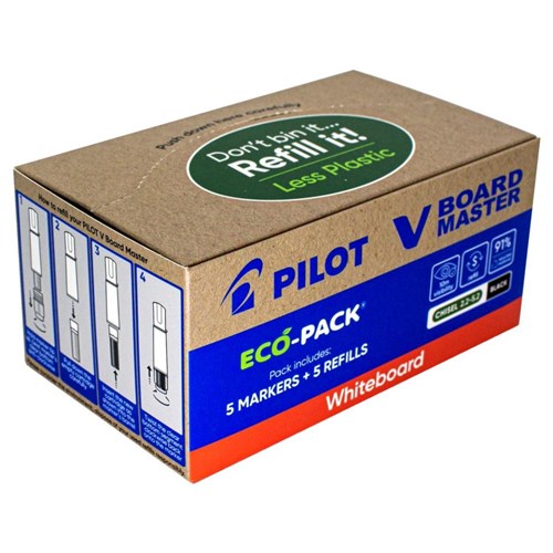 Pilot BeGreen V Board Master Whiteboard Markers Chisel Tip And Refill Black Eco Pack Of 5