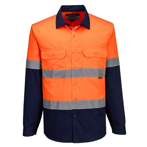 Portwest Industrial Hi-Vis Lightweight Contrast Shirt Long Sleeve 2XS Orange/Navy