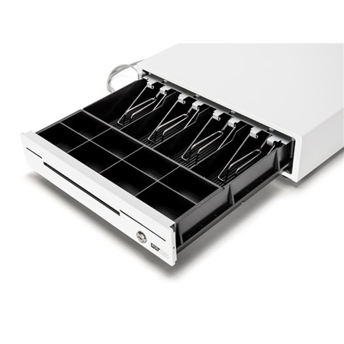 • There are 4 note holders, 8 coin trays and a cheque slot for organising currency.