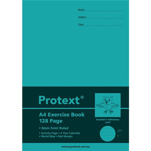 PROTEXT EXERCISE BOOK A4 8mm Ruled 128pgs - Owl