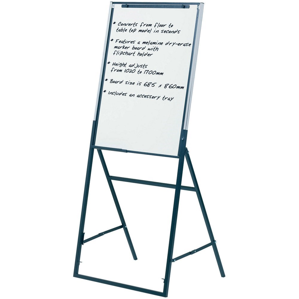 • Easel height adjusts from 1020mm - 1700mm at the touch of a button but folds away for easy storage.