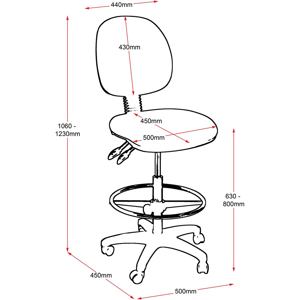• Chair Dimensions: Seat 500W x 450D x Back 430H x Seat 630-800mmH.