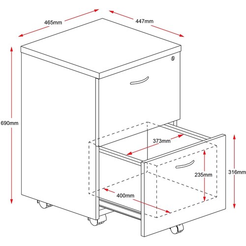 Rapid Worker Mobile Pedestal 2 Drawer 690Hx465Wx447mmD Ironstone