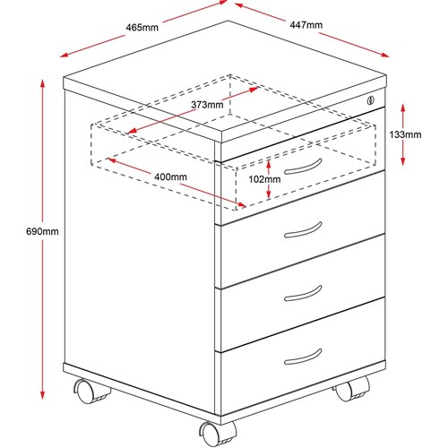 Rapid Worker Mobile Pedestal 4 Drawer 690Hx465Wx447mmD Ironstone