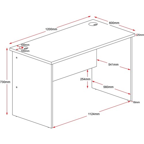 Rapid Worker Open Desk 1200Wx600Dx730mmH Natural Oak & Ironstone