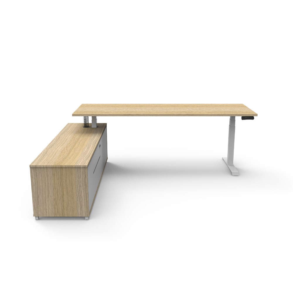 Rapidline Boost+ Executive Desk + LHS Cabinet 2270W x 1936D x 620-1270mmH Oak/White